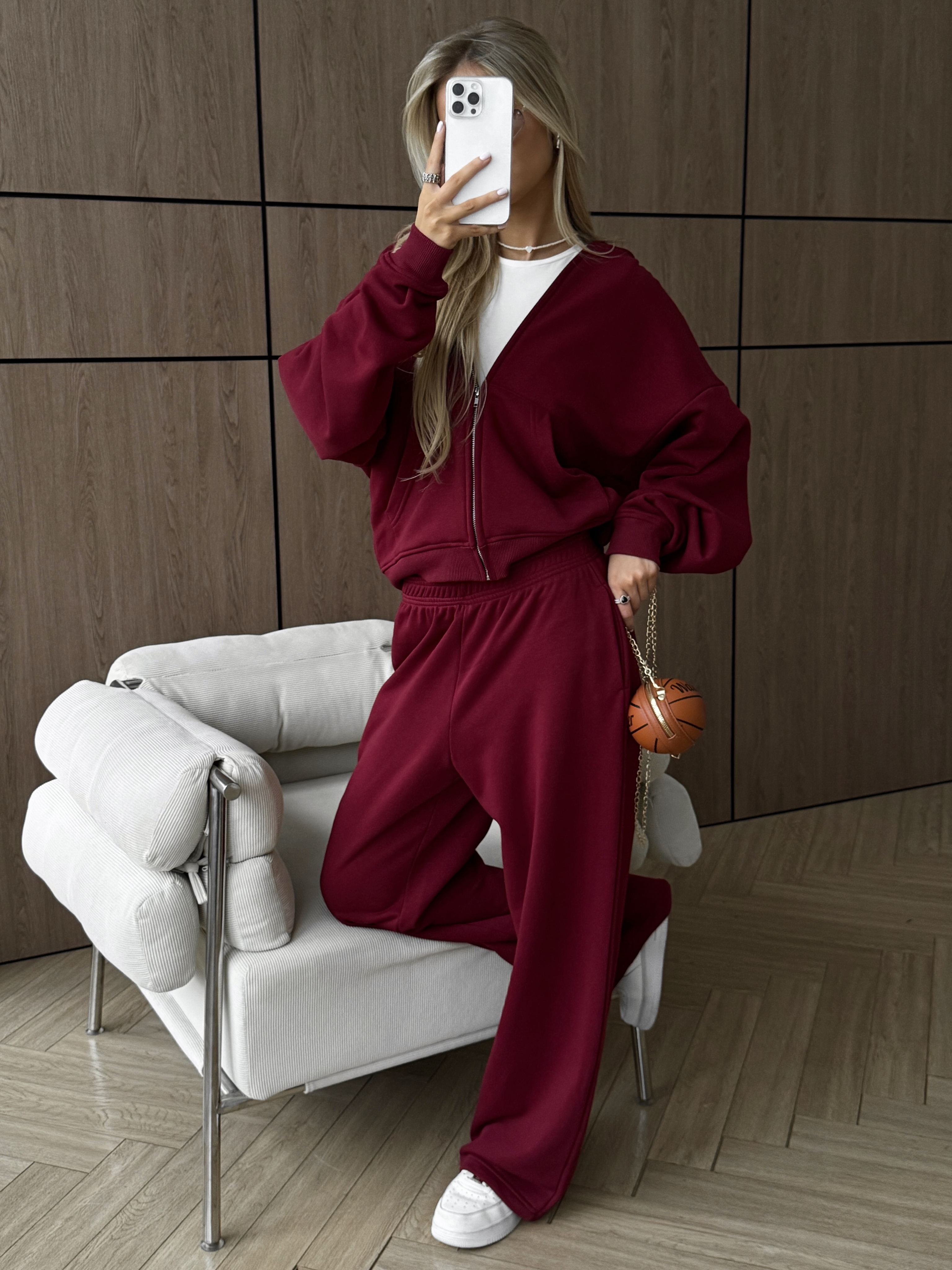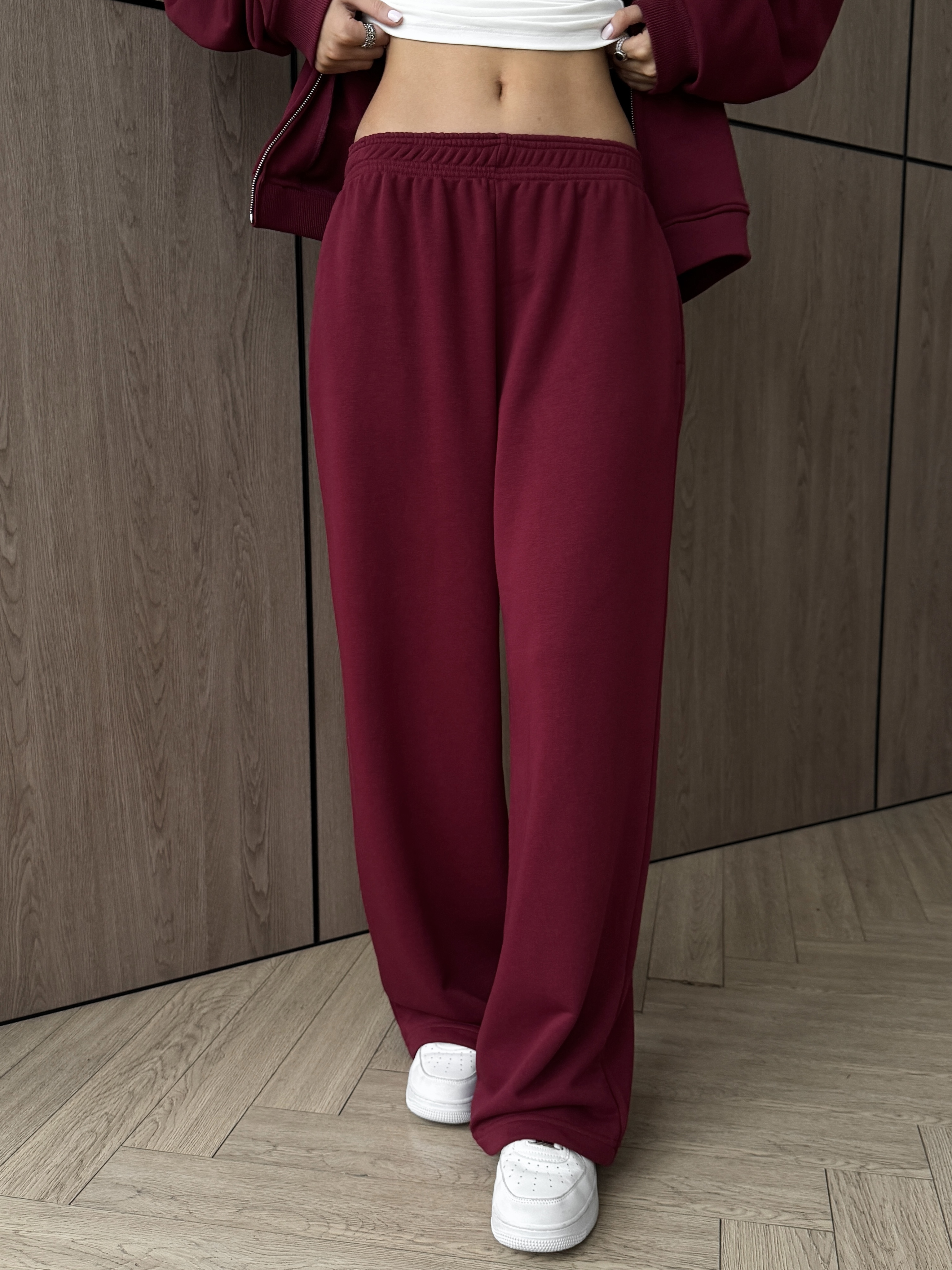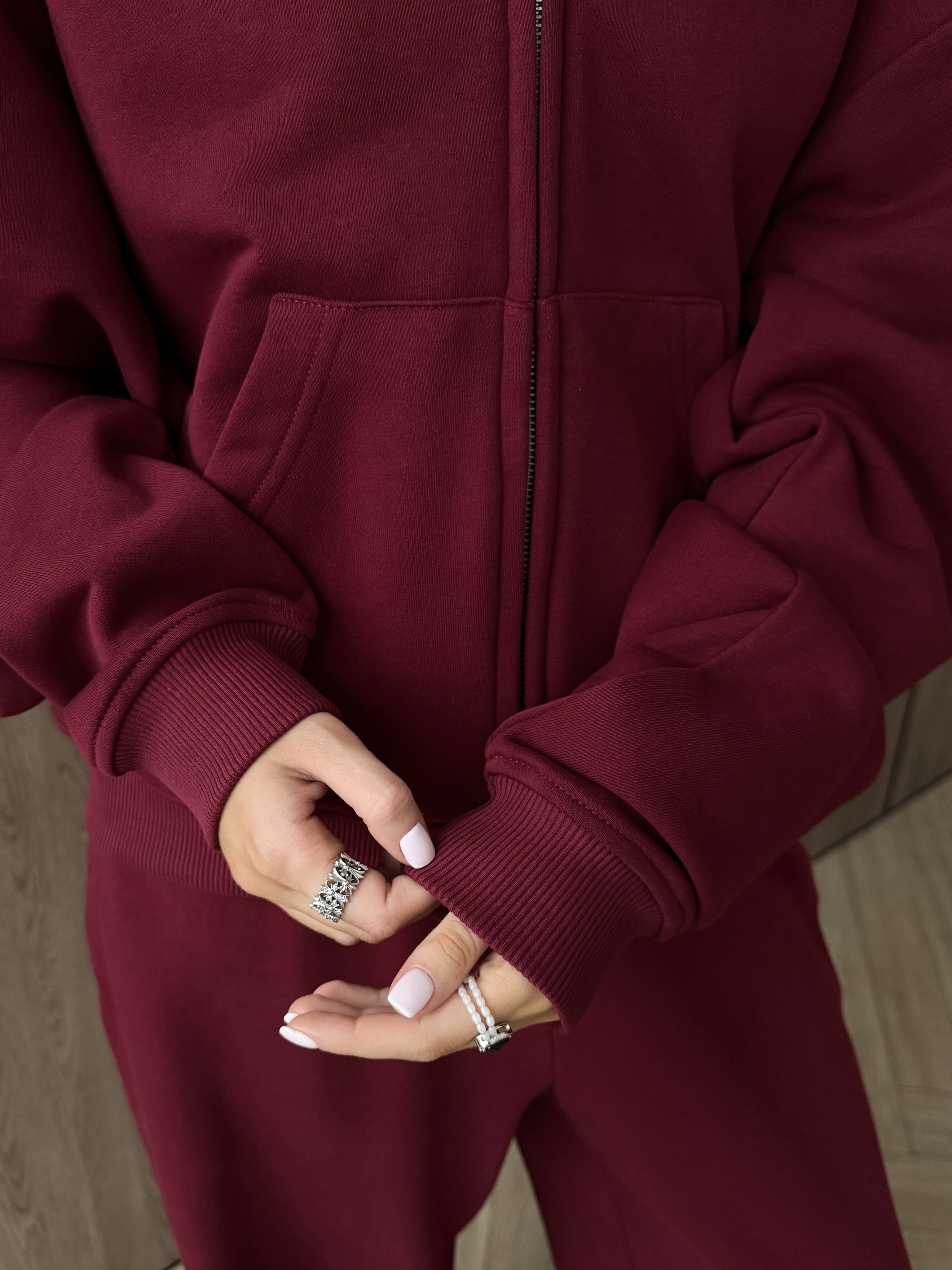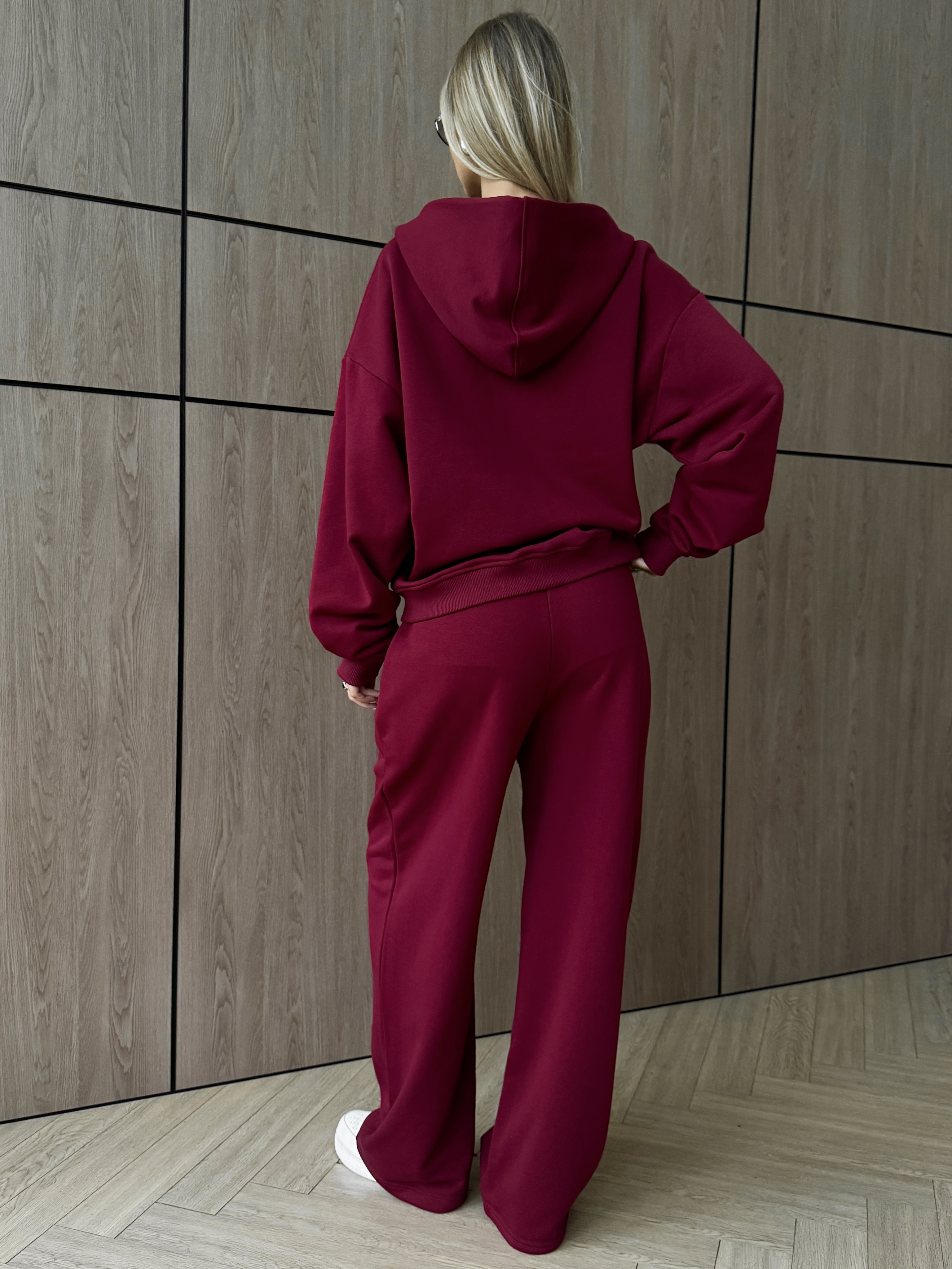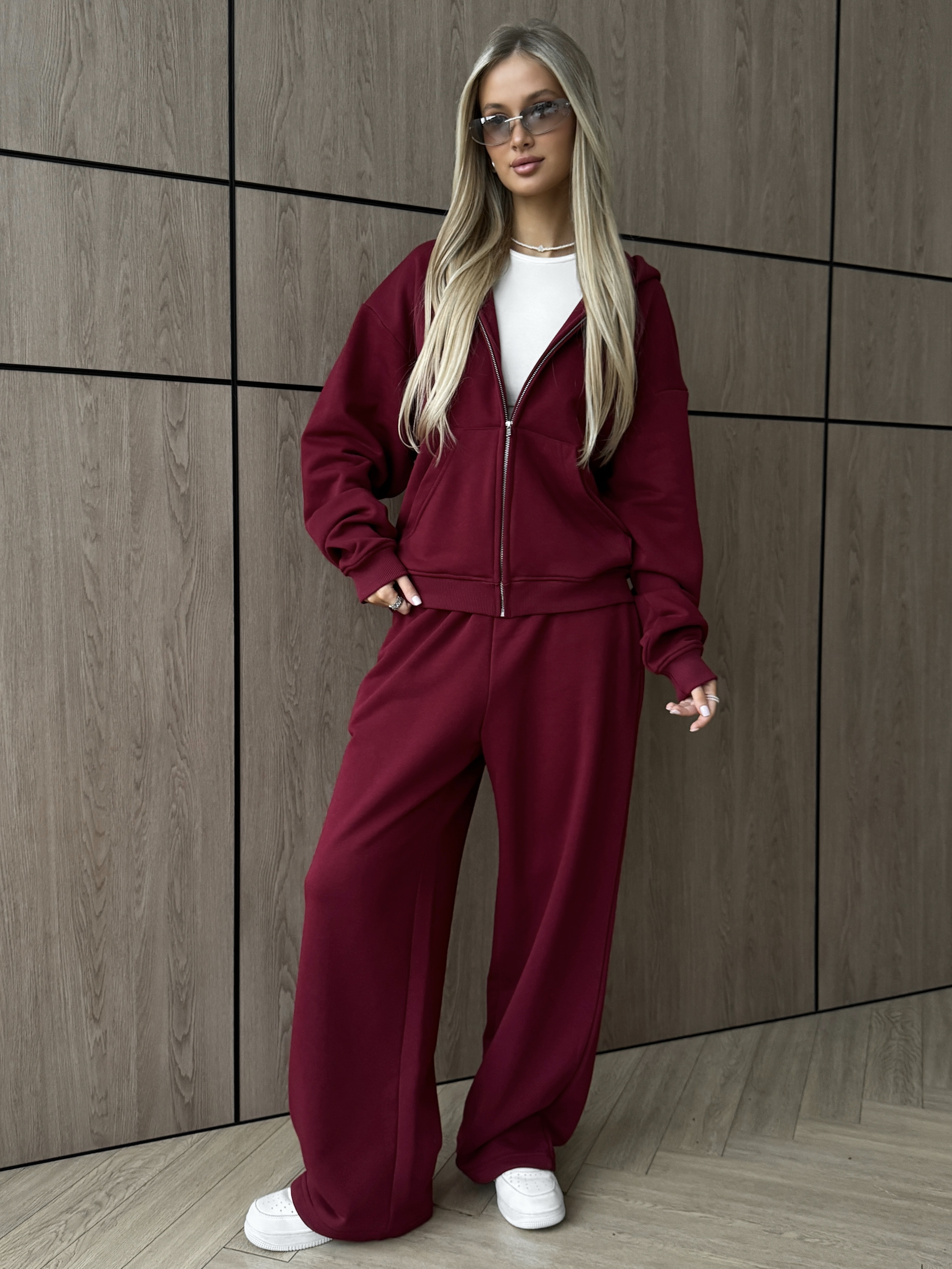 Тёплый унисекс костюм‑комплект из футера (хлопок 90%): зип худи на молнии и брюки. Брюки прямые и свободные, посадка оверсайз, пояс с затяжками и удобные карманы. Худи на молнии с капюшоном на и надёжной фурнитурой, хорошо держит форму и согревает. Материал мягкий и дышащий, поэтому подходит для спорт‑активностей, тренировок и для танцев. В хип‑хоп стилях модель не ограничивает движения и выглядит аккуратно на сцене. Эстетика streetwear легко собирает образы в духе пинтерест, а элементы костюма можно носить вместе или по отдельности.