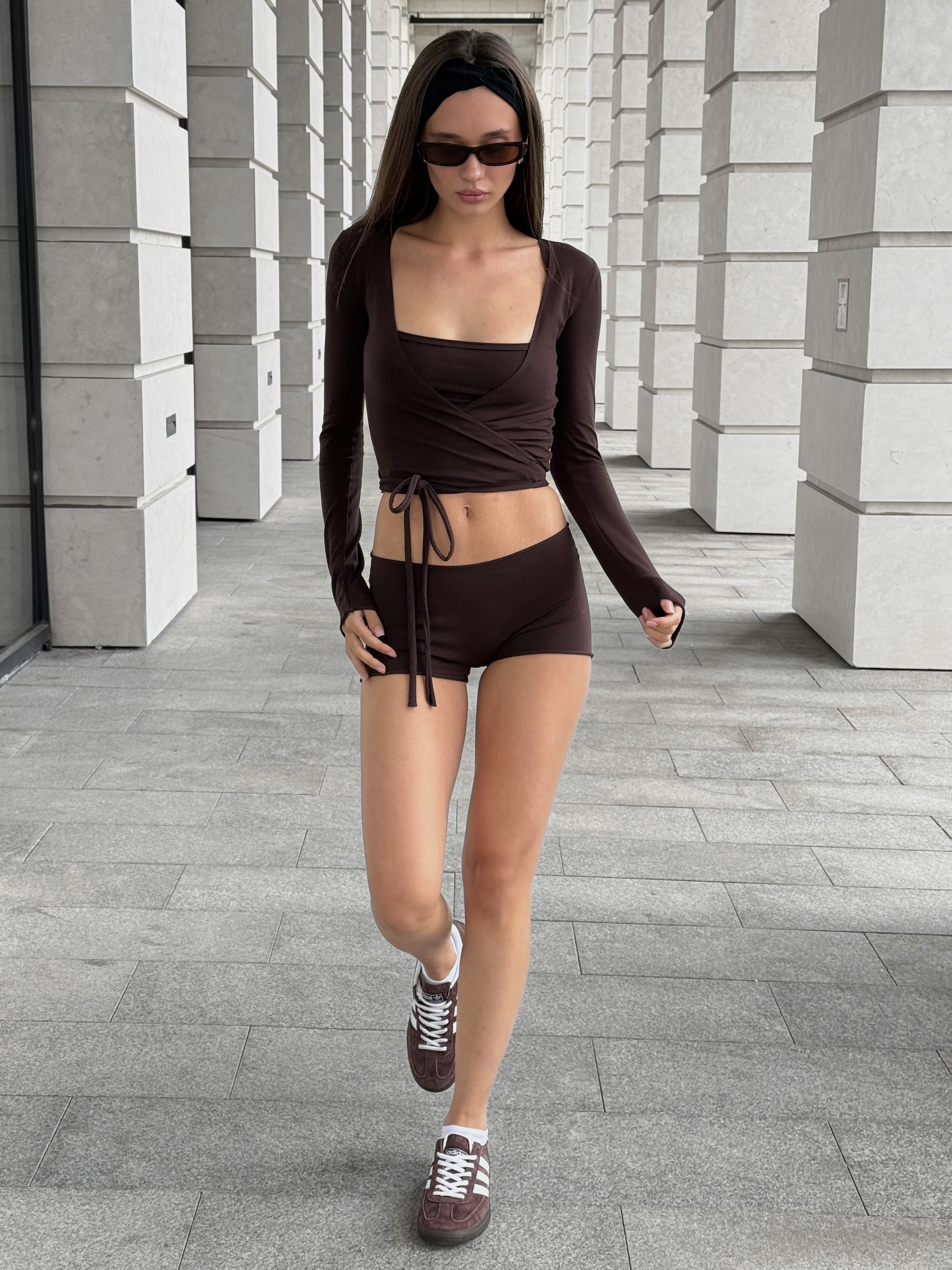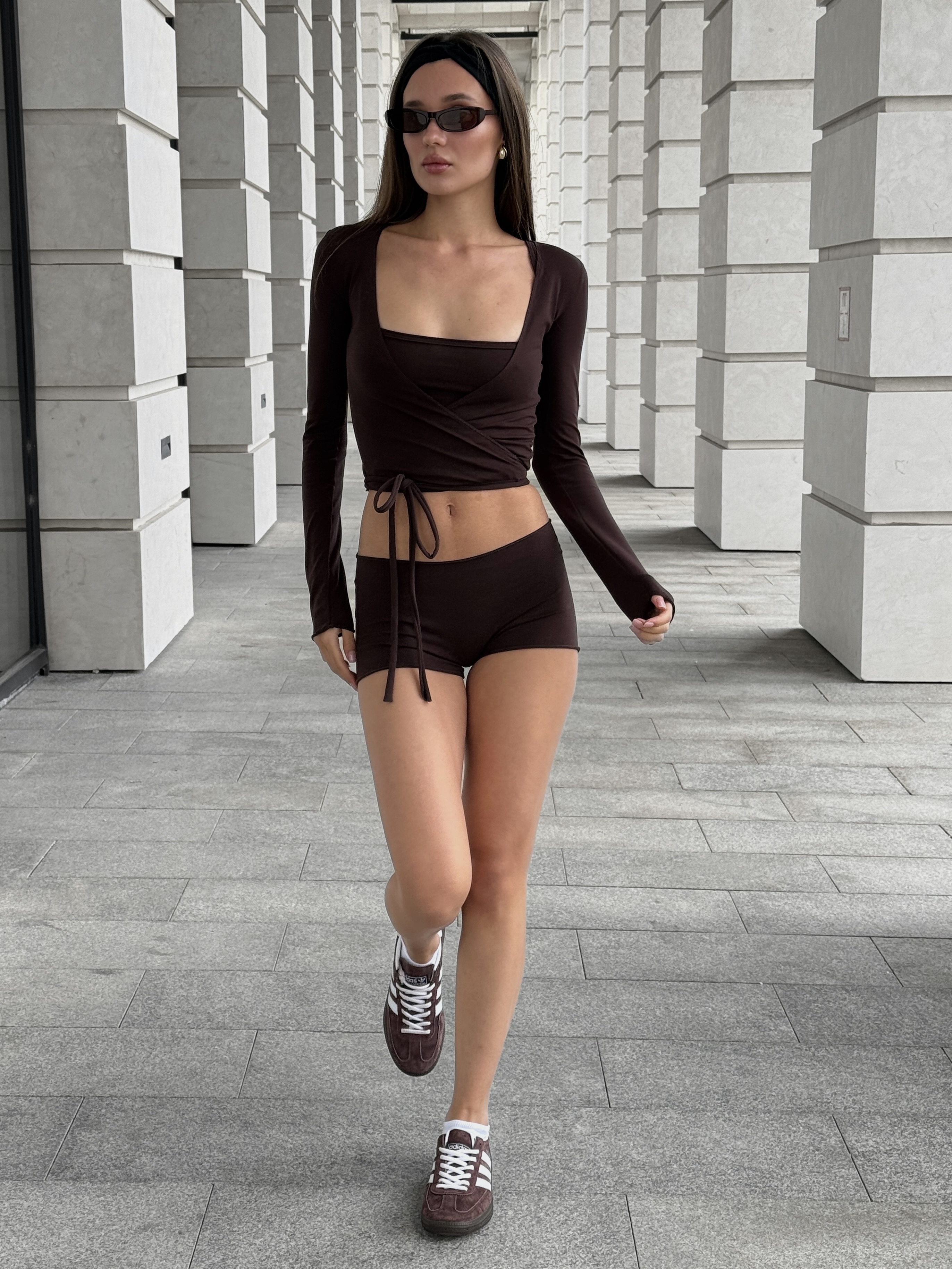 Лонгслив с завязками в стиле скимс — минимализм и функциональность в одном образе. Вдохновлённый Пинтерестом, он держится на чистых линиях и мягком крое, подчёркивая силуэт без перегрузок. Хлопковый трикотаж дышит и дарит комфорт как во время тренировок, так и повседневной носки. Регулируемые завязки позволяют адаптировать посадку под активность, а облегающий силуэт подчёркивает контуры тела. Длинный рукав и накидка создают гармоничный слой, не перегружая образ.